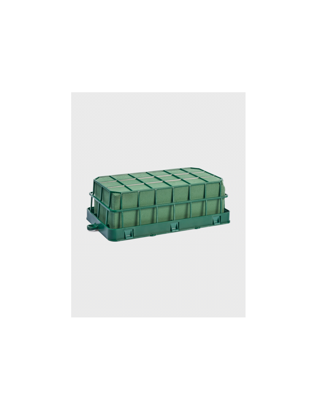 Bandeja de plástico para esponjas florales, diseñada especialmente para floristería profesional y trabajos de decoración con flores. Esta base permite colocar hasta 1 esponja floral (no incluidas), facilitando la creación de centros de mesa, arreglos florales y composiciones decorativas con mayor estabilidad y precisión.